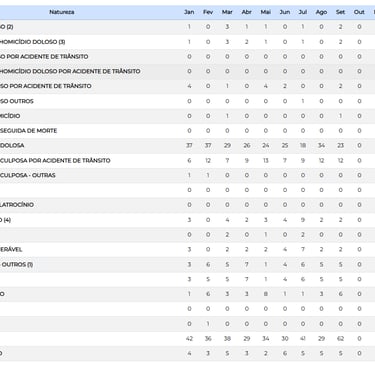 A análise do demonstrativo mensal de ocorrências anexo apenas reforça o quão volátil está a segurança em nossa comunidade. Os números mostram que, embora os Homicídios Dolosos tenham chegado a um total de 9 casos nos dez meses analisados (Janeiro a Outubro, excluindo Novembro e Dezembro), os crimes contra o patrimônio e a integridade física continuam em patamares que sufocam a paz. A Lesão Corporal Dolosa acumula 253 registros no período, e os Furtos - Outros somam assustadores 341 ocorrências. Mesmo os Roubos - Outros e Roubos de Veículo, que totalizam 41 e 32 casos, respectivamente, desenham um cotidiano de medo. Os 29 casos de Estupro neste mesmo período exigem atenção e ações urgentes de proteção e prevenção.