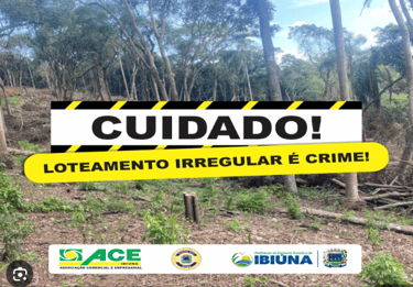 Loteamentos irregulares e clandestinos são duas modalidades de parcelamento ilegal que se distinguem pela gravidade da violação. Ambos resultam em um imóvel com insegurança jurídica e, frequentemente, problemas de infraestrutura para o adquirente. O loteamento clandestino é a forma mais grave, caracterizando-se por ser executado sem qualquer autorização ou consulta prévia aos órgãos públicos competentes (Prefeitura, Cartório de Registro de Imóveis, etc.).
